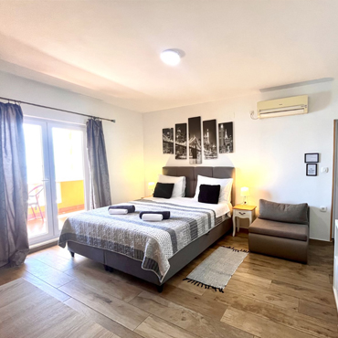 Apartment studio suite with balcony and sea view (2 persons) features kitchen and private bathroom. Living area features TV with satellite channels and AC. Free WiFi is included. Kitchen is equipped with: