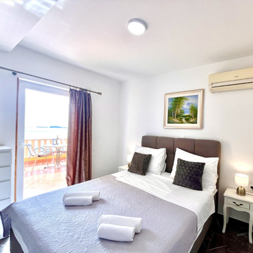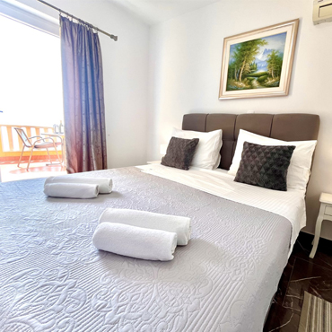 One-Bedroom apartment with balcony and sea view (2 persons), Top floor It features kitchen and private bathroom. Living area features TV with satellite channels and AC. Free WiFi is included. Kitchen is equipped with: Basic cooking equipment, microwave, fridge, electric hob, kettle. For other items you can contact me and I will provide it. Private bathroom comes with shower, towels and toilet paper. Bed linen is also included. Guest have access to common swimming pool and area with sunbeds.