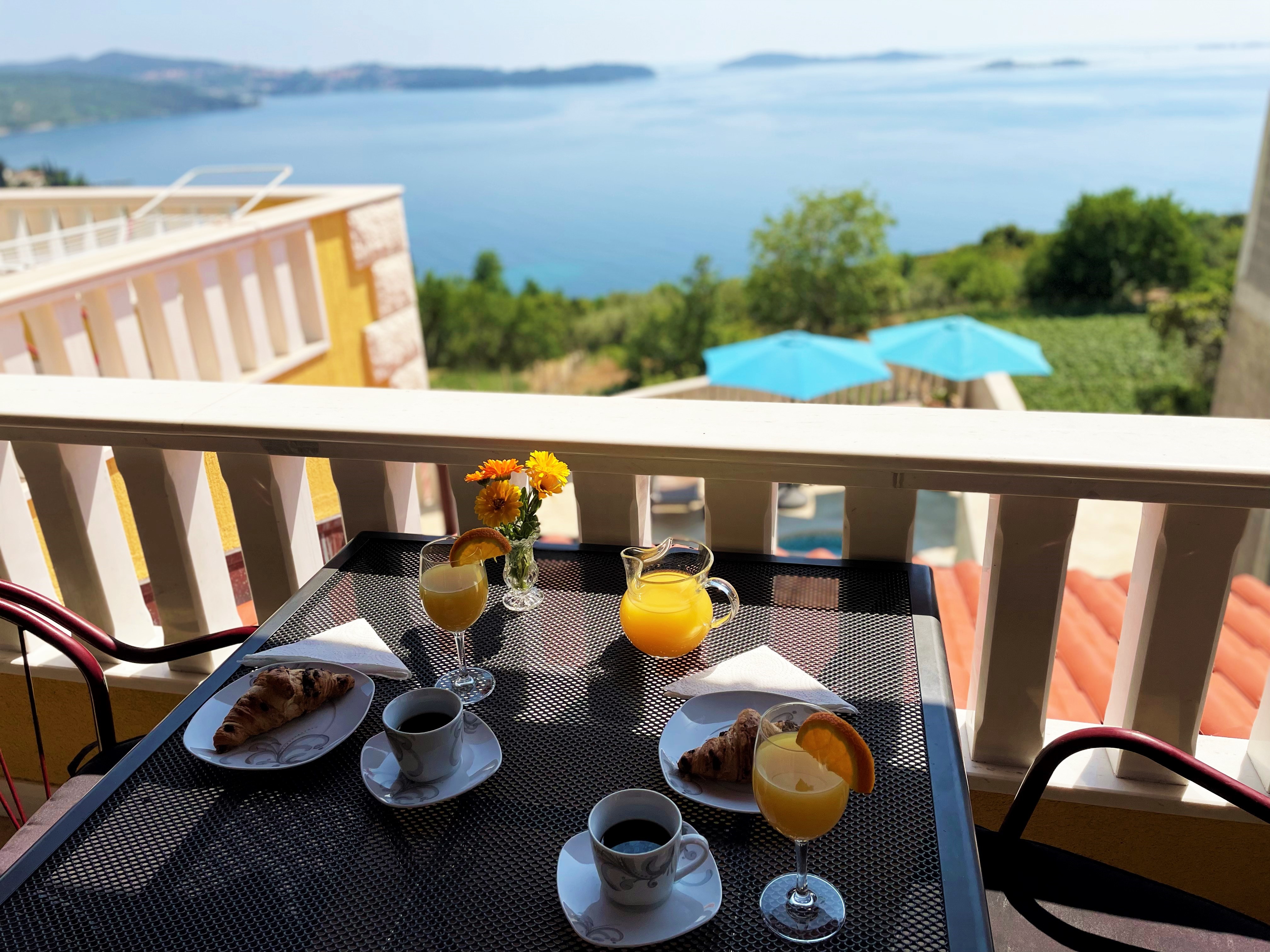 Modern studio apartment with balcony and sea view (2 persons) features kitchen and private bathroom. Living area features TV with satellite channels and AC. Free WiFi is included. Kitchen is equipped with: Basic cooking equipment, fridge, electric hob, kettle. For other items you can contact me and I will provide it. Private bathroom comes with shower, towels and toilet paper. Bed linen is also included. Guest have access to common swimming pool and area with sunbeds and parasols.