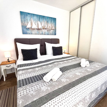 Appartamento familiare con due camere da letto con balcone e vista mare (4 persone) dotato di cucina e bagno privato. La zona giorno dispone di TV con canali satellitari e aria condizionata. La connessione Wi-Fi gratuita è inclusa. La cucina è dotata di: attrezzatura da cucina di base, forno a microonde, frigorifero, piastra elettrica, bollitore. Per altri articoli potete contattarmi e ve lo fornirò.