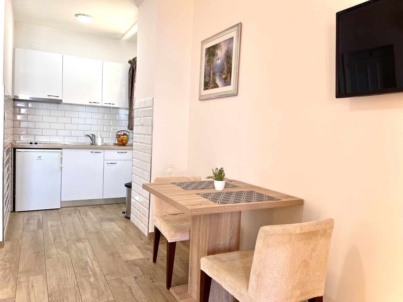 Appartamento monolocale suite con balcone e vista mare (2 persone) dotato di cucina e bagno privato. La zona giorno dispone di TV con canali satellitari e aria condizionata. La connessione Wi-Fi gratuita è inclusa. La cucina è dotata di: