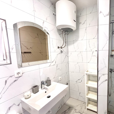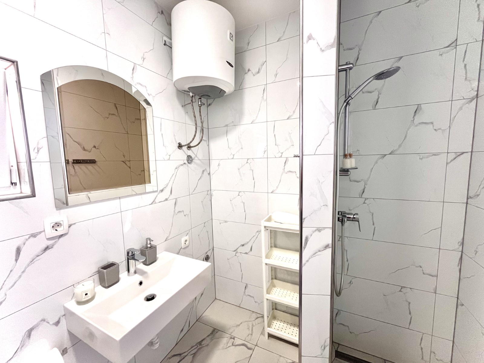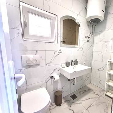 Il bagno privato è dotato di doccia, asciugamani e carta igienica.