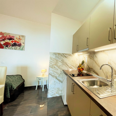 Appartamento Comfort con 1 camera da letto con balcone e vista mare (3 persone) dispone di cucina e bagno privato. La zona giorno dispone di TV con canali satellitari e aria condizionata. La connessione Wi-Fi gratuita è inclusa. La cucina è dotata di: