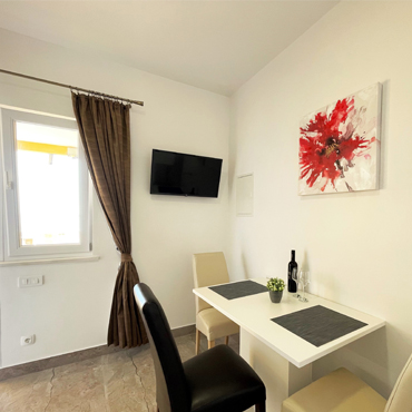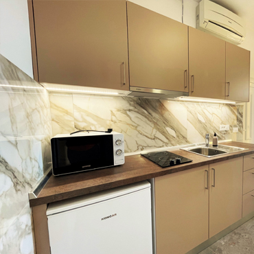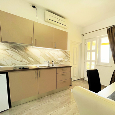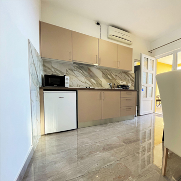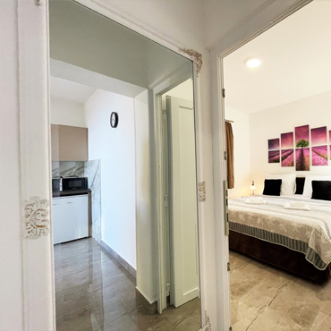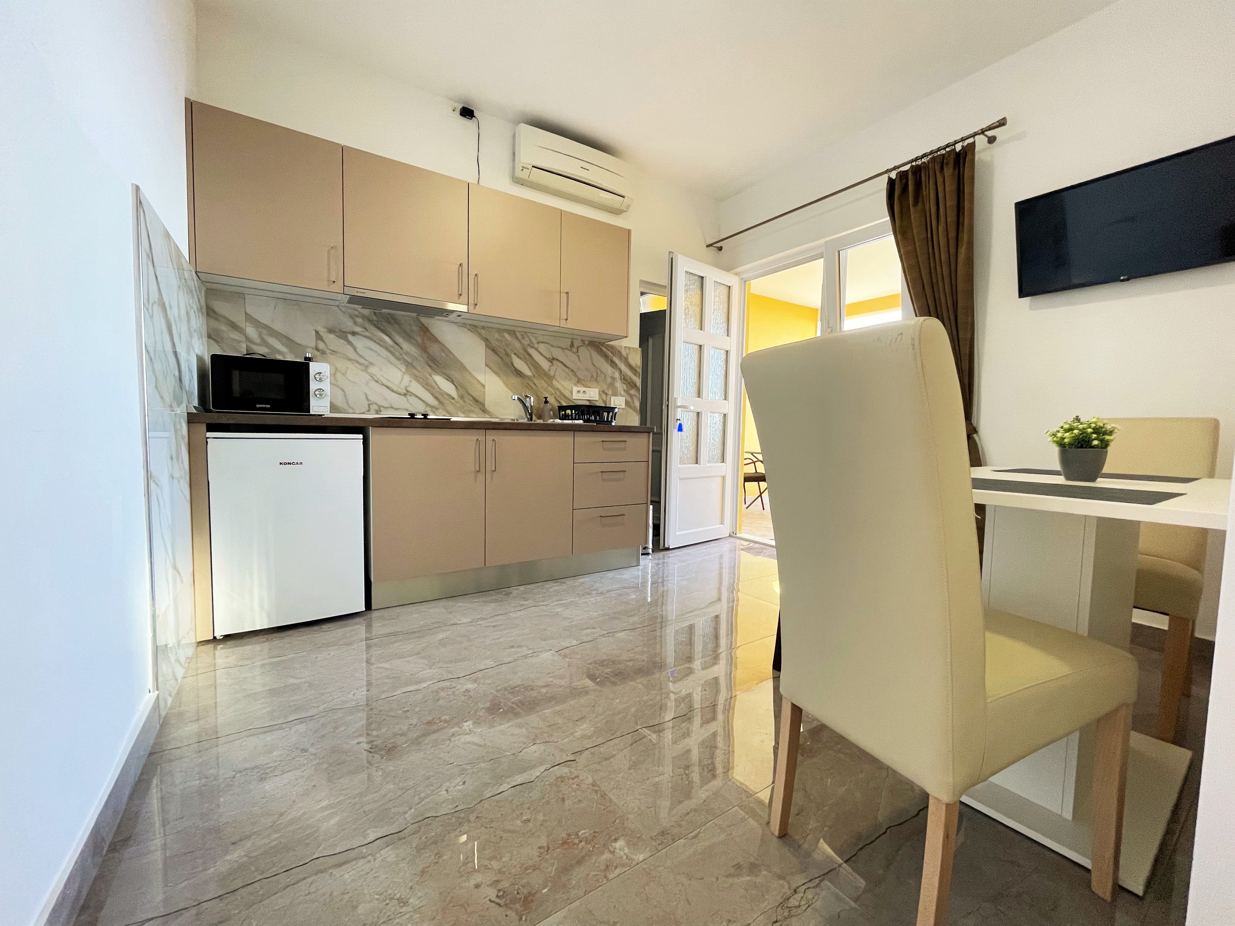 Moderno appartamento con due camere da letto con balcone e vista mare per 3 persone dotato di cucina e bagno privato. La zona giorno dispone di TV con canali satellitari e aria condizionata. La connessione Wi-Fi gratuita è inclusa. La cucina è dotata di: