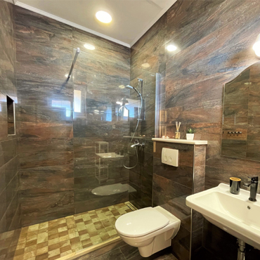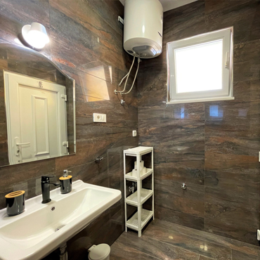 Il bagno privato è dotato di doccia, asciugamani e carta igienica.